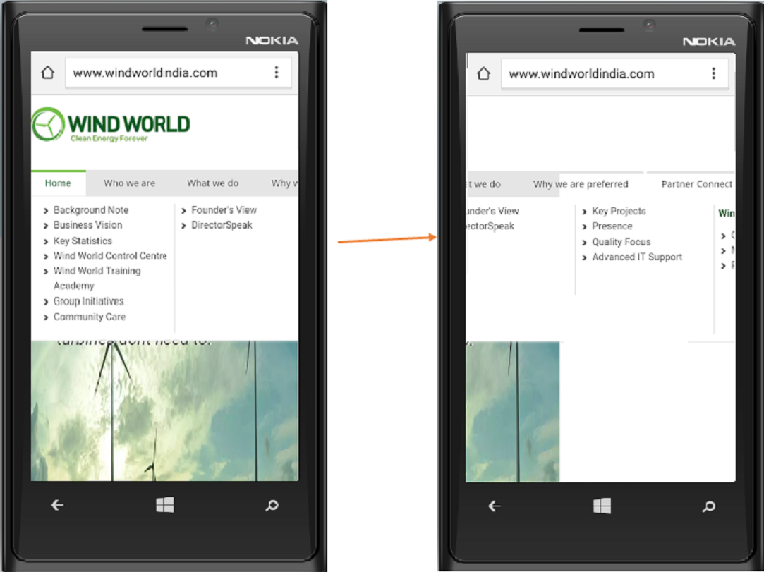 Though the browsing on a mobile is fundamentally vertical, the screen can get a little wider in the landscape mode of the mobile phones. The design should use a fluid grid layout to adapt to the different screen orientations.